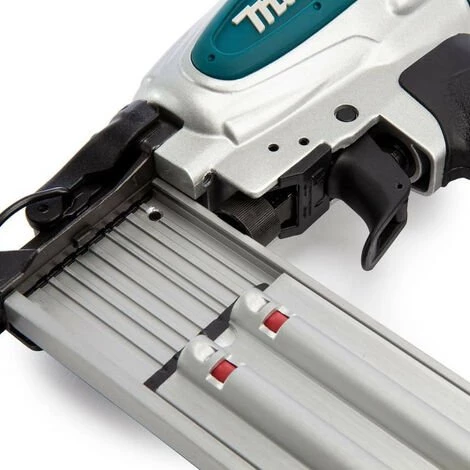 Le cloueur de finition Makita est l’un des plus léger et solide de sa catégorie grâce à son alliage moulé sous pression. Sa profondeur d’enfoncement est réglable sans l’aide d’un tiers outil ce qui rend ce cloueur professionnel parfaitement adapté pour les travaux de fixation de corniches, de moulures, de chambrants ou de lambris. La partie avant s’ouvre sans outil afin de résoudre facilement tout blocage éventuel.
