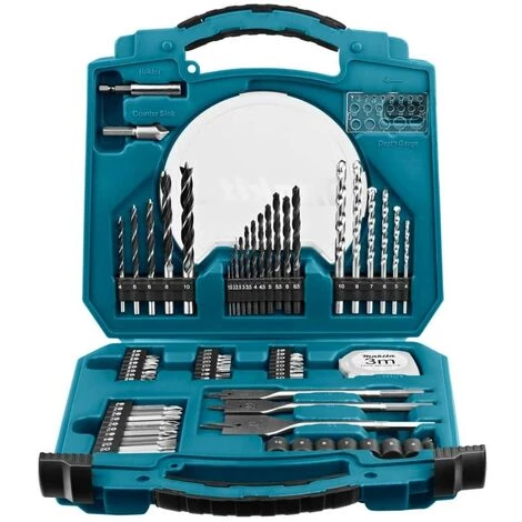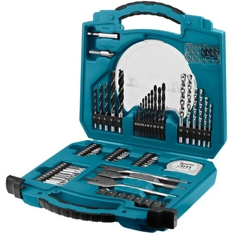 Le coffret Makita D-47145 comprend un ensemble complet comprenant diffĂ©rentes tailles de forets Ă bois, Ă pierre, Ă mĂ©tal, de capuchons, d’embouts de vis et de divers autres accessoires. Tous les outils sont livrĂ©s dans une boĂ®te en plastique robuste avec une poignĂ©e pour le stockage et la protection.