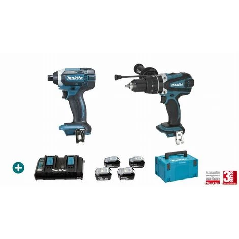 - Pack énergie composé de 4 batteries 5.0Ah 18 V Li-Ion et d’un chargeur double DC18RD livrés dans un coffret MAKPAC ( 821551-8 + moulage 838258-9 ).