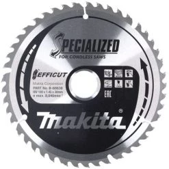 La lame de scie SPECIALIZED EFFICUT de Makita a Ă©tĂ© spĂ©cialement dĂ©veloppĂ©e pour le sciage avec des scies circulaires sans fil. Elle assure une performance et une sĂ©curitĂ© optimales lors du travail et se distingue par une durĂ©e de vie plus longue que celle des lames de scie classiques. Cette lame de scie garantit Ă©galement une coupe rapide (250 % de plus par rapport aux lames de scie classiques), offrant ainsi un gain de temps considĂ©rable (environ 60%). Son Ă©paisseur de 1,0 mm vous permet de couper le bois plus rapidement (jusqu’Ă 2,5 fois) qu’avec une lame de scie classique. Elle est dotĂ©e d’excellentes caractĂ©ristiques : des pointes de carbure spĂ©cialement formĂ©es et rectifiĂ©es avec prĂ©cision assurent une coupe efficace et en douceur. De plus, elle dispose d’une gĂ©omĂ©trie de dents particulière qui garantit une excellente extraction des dĂ©bris. Le segment infĂ©rieur des dents de cette lame offre une rĂ©sistance de frottement rĂ©duite et donc un fonctionnement plus souple. Il s’agit d’un carbure d’une gĂ©omĂ©trie spĂ©ciale dont la pointe est très rĂ©sistante aux chocs et donc particulièrement rĂ©sistante. Makita est l’un des principaux fabricants d’outils Ă©lectriques qui doit sa rĂ©putation Ă l’excellente qualitĂ© de fabrication de ses outils.