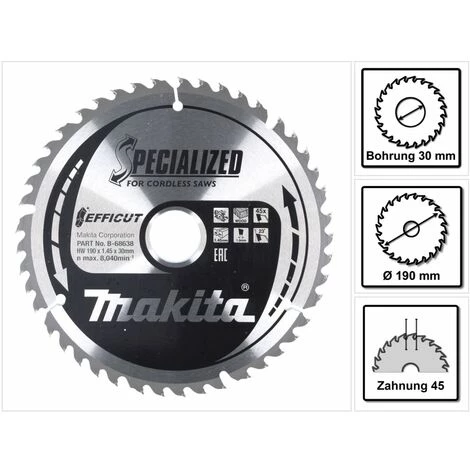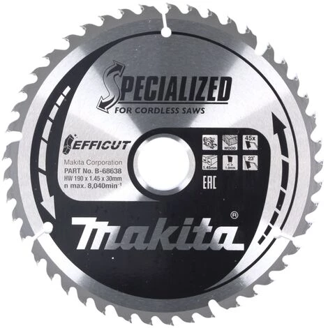 – 1x Makita CCF19045G Lame de scie circulaire SPECIALIZED EFFICUT 190 x 30 x 1,0 mm