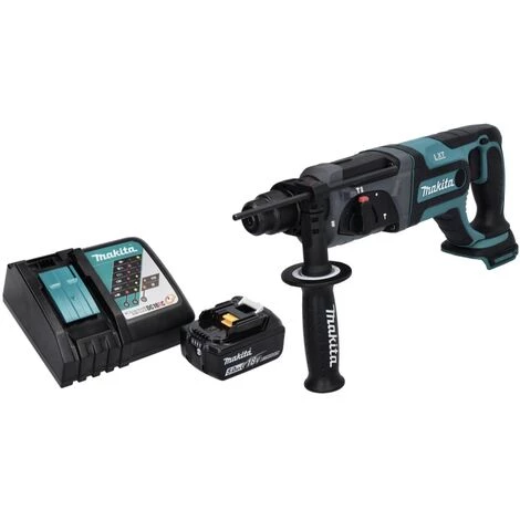Le Makita est destinĂ© au perçage Ă percussion et au perçage dans la brique, le bĂ©ton et la pierre, ainsi qu’aux travaux de burinage. Il convient Ă©galement au perçage normal dans le bois, le mĂ©tal, la cĂ©ramique et le plastique. Le puissant marteau perforateur convient au perçage, au perçage Ă percussion et au burinage. De plus, le marteau combinĂ© impressionne par son embrayage Ă friction, son frein moteur et son rĂ©glage de burin Ă 40 positions pour un travail sĂ»r et optimal dans toutes les situations. L’appareil dispose de balais de charbon qui peuvent ĂŞtre changĂ©s de l’extĂ©rieur et grâce Ă une nouvelle construction d’amortissement en caoutchouc, moins de vibrations sont gĂ©nĂ©rĂ©es. Avec le support SDS-Plus, vous pouvez monter les accessoires sur le DHR 241 rapidement, sans outils et Ă l’abri de la poussière.