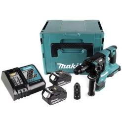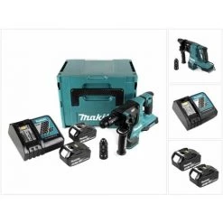 Le DHR 281 est un puissant perforateur sans fil de Makita. Le perforateur est alimentĂ© par deux batteries Makita 18 volts pour effectuer les tâches les plus exigeantes. L’appareil est Ă©quipĂ© d’un moteur sans balais, ce qui a un effet considĂ©rablement positif sur la durĂ©e de vie et l’endurance de l’appareil. Un embrayage Ă friction protège l’utilisateur si la perceuse Ă percussion se bloque pendant le travail. De plus, Makita a installĂ© votre technologie Xtreme Protect, qui assure une protection optimale contre la poussière et les Ă©claboussures d’eau. Cela rend la perceuse extrĂŞmement rĂ©sistante et durable. La technologie anti-vibration assure un haut niveau de confort, neutralisant les signes de fatigue causĂ©s par les vibrations. De plus, l’appareil dispose d’une LED puissante qui Ă©claire de manière optimale la zone de travail et d’un affichage d’avertissement en cas de faible capacitĂ© de la batterie. L’appareil est Ă©galement livrĂ© avec un mandrin Ă changement rapide confortable. Le Makita DC 18 RC est un chargeur rapide de batterie pour batteries Li-Ion 7,2 – 18 volts de Makita. Le chargeur surveille et contrĂ´le en permanence la tension et la tempĂ©rature Ă l’aide d’un microprocesseur intĂ©grĂ©, qui garantit des processus de charge optimaux et protège en mĂŞme temps les batteries grâce Ă un contrĂ´le de l’air de refroidissement gĂ©rĂ© de manière optimale. Le chargeur rapide charge la gĂ©nĂ©ration de batteries 18 volts de Makita extrĂŞmement rapidement, ce qui entraĂ®ne des pauses de charge très courtes ou un processus de travail fluide dès que, par exemple, deux batteries sont disponibles. La batterie Makita BL 1850 B convainc par sa longue durĂ©e de travail. Un avantage supplĂ©mentaire est le temps de charge court de seulement 45 minutes dans le chargeur Makita. Grâce Ă une faible autodĂ©charge et Ă une protection contre les courts-circuits, les surtensions et les surchauffes, la batterie a une durĂ©e de vie maximale. Le BL 1850 B dispose Ă©galement d’un affichage de l’Ă©tat de charge par LED pour vĂ©rifier l’Ă©nergie restante dans la batterie.