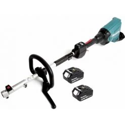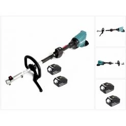 Respectueux de l’environnement et extrĂŞmement puissant, c’est l’appareil multifonction DUX 60 de Makita. Plus de 10 accessoires diffĂ©rents (non inclus) peuvent ĂŞtre attachĂ©s. Ainsi, la rentabilitĂ© est imbattable, tout ce dont vous avez besoin est le bon accessoire et non un grand nombre d’appareils. Qu’il s’agisse de taille-haies, de tronçonneuses, de coupe-herbe, de faux, de coupe-sol ou de balais, il semble qu’il puisse tout faire. Tous les outils d’application peuvent ĂŞtre changĂ©s complètement sans outils. Deux batteries de 18 volts (non incluses) fournissent beaucoup d’Ă©nergie Ă l’appareil. Il est recommandĂ© de toujours utiliser deux batteries identiques. Makita a Ă©quipĂ© le lecteur multifonction DUX 60 de la technologie la plus rĂ©cente, de sorte qu’il est protĂ©gĂ© de manière optimale contre la poussière et les Ă©claboussures d’eau grâce Ă la technologie Xtreme Protect (XTP). Le moteur puissant est dotĂ© d’une technologie de dĂ©tection de rĂ©troaction active, qui arrĂŞte l’appareil dès qu’il se bloque. Le contrĂ´le Ă©lectronique de la vitesse Ă trois niveaux est conçu pour toutes les applications. L’inversion du sens de rotation permet d’Ă©liminer l’herbe coupĂ©e. La poignĂ©e ronde rĂ©glable en hauteur de l’appareil peut ĂŞtre adaptĂ©e individuellement Ă la taille du corps, aux accessoires et aux conditions de travail donnĂ©es. Grâce Ă la bandoulière incluse dans la livraison, un travail Ă©conome en Ă©nergie est possible.