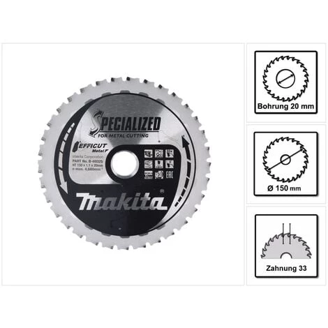 – 1x Makita Lame de scie MCCS15033E SPECIALIZED EFFICUT 150 x 20 x 1,1 mm – 33 dents (B-69325)