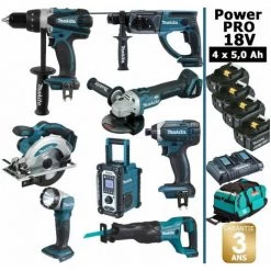 Pack Power PRO MAKITA 18V 8 outils 4 batt 5Ah comprenant: