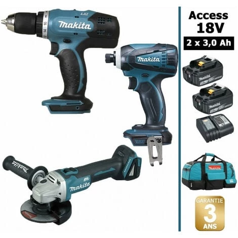 Pack Access MAKITA 18V 3 machines 2 batt 3Ah comprenant
