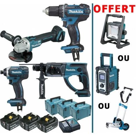 Pack Immanquable MAKITA 18V de 4 machines 3 batt 5Ah comprenant :