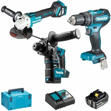 Makita DLX3090TJ, fourni avec le marteau perforateur DHR171, la meuleuse DGA513Z et le tournevis DHP485, est la solution appropriée pour toute opération de maintenance, pouvant aller des opérations d’ancrage, de perçage, de vissage, de coupe et de meulage avec une extrême praticité, en utilisant toujours le même piles au lithium 18v.