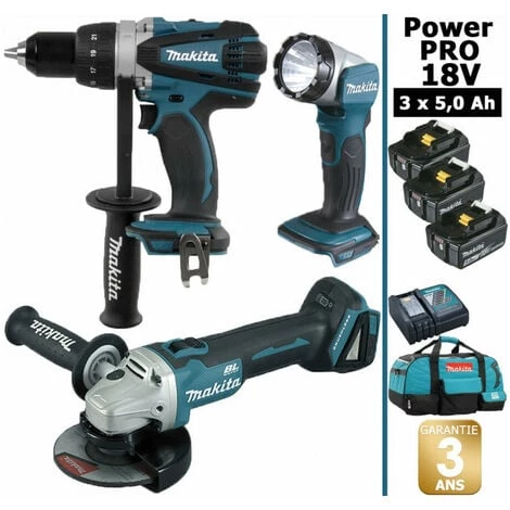 Pack Power PRO MAKITA 18V 3 outils 3 batt 5Ah comprenant: