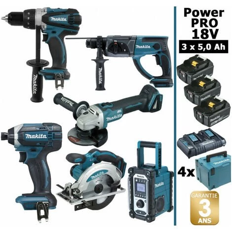 Pack Power PRO MAKITA 18V 6 outils 3 batt 5Ah comprenant: