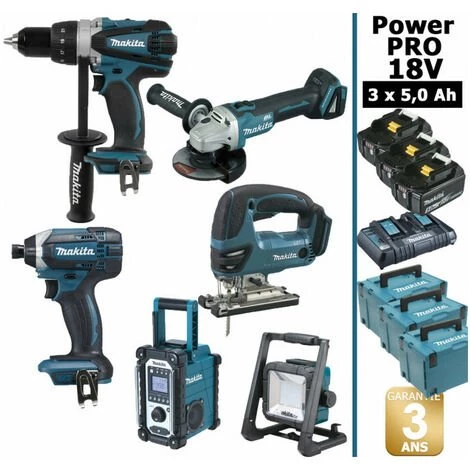 Pack Power PRO MAKITA 18V 6 outils 3 batt 5Ah comprenant: