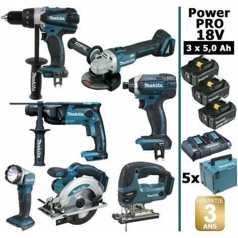 Pack Power PRO MAKITA 18V 7 outils 3 batt 5Ah comprenant: