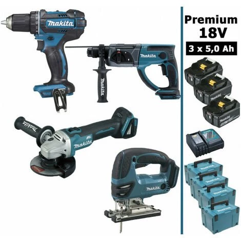 Pack Premium MAKITA 18V de 4 machines 3 batt 5Ah comprenant :