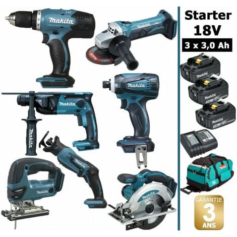 Pack Starter MAKITA 18V 7 outils 3 batt 3Ah comprenant: