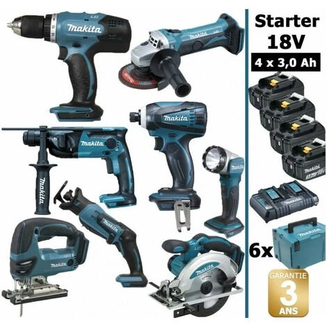 Pack Starter MAKITA 18V 8 outils 4 batt 3Ah comprenant: