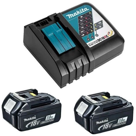 Le chargeur fourni référence DC18RC Makita est un chargeur rapide à une entrée capable de charger les batteries 7,2 à 14,4 Ni-Mh et 18 V Li-Ion.