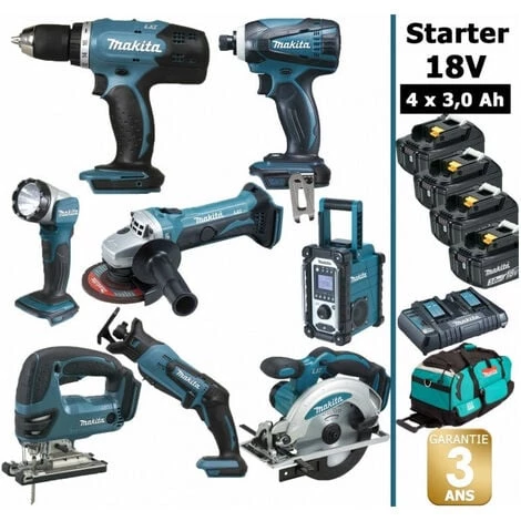 Pack Starter MAKITA 18V 8 outils 4 batt 3Ah comprenant: