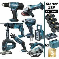 Pack Starter MAKITA 18V 8 outils 4 batt 3Ah comprenant: